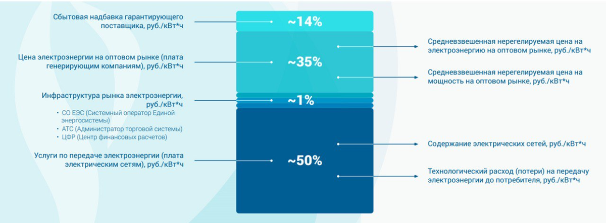 это услуги операторов рынка: Системный оператор, Администратор торговой системы и Центр финансовых расчётов (менее 1%)