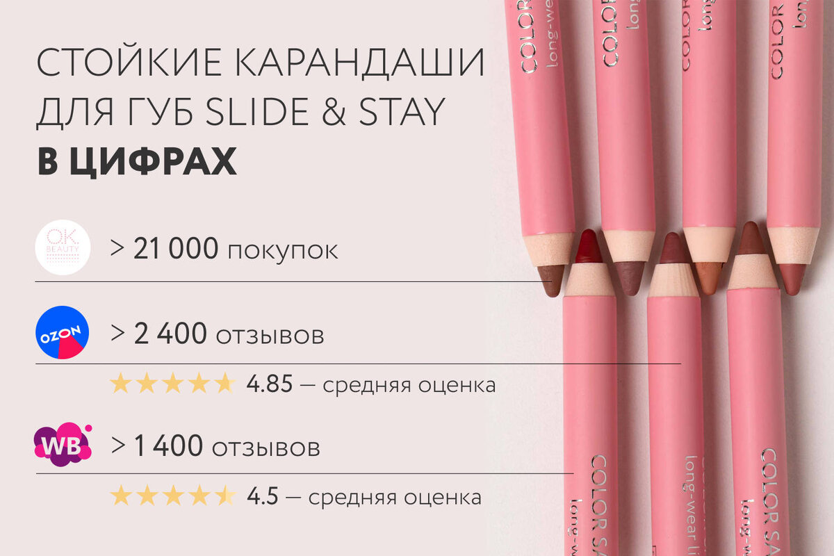 Представляем 5 причин, по которым вам стоит обзавестись стойкими карандашами для губ OK Beauty Slide & Stay этой весной.