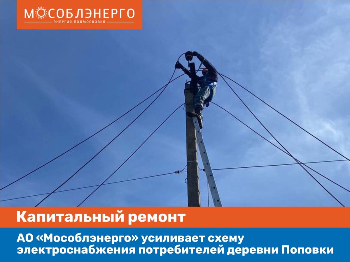 АО «Мособлэнерго» проводит работы по усилению действующей схемы электроснабжения потребителей деревни Поповка Раменского городского округа. На воздушной линии ВЛ-10 кВ было заменено более 500 м провода на СИП (самонесущий изолированный провод). От данной линии запитаны 3 подстанции, которые обеспечивают электроэнергией участки на ул. Александра Парусникова, Сергия Радонежского, Сергея Белокурова и Серебряной. В данном частном секторе ведется активная застройка. Поэтому усиление схемы электроснабжения - это необходимая мера. Мероприятия проводятся по программе капитального ремонта АО «Мособлэнерго». Всего на территории Подмосковья в 2023 году планируется отремонтировать 316 км воздушных и кабельных линий электропередачи.