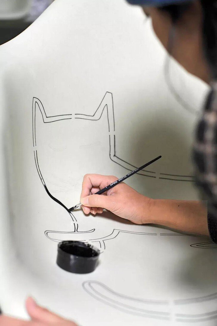 Так на только что изготовленных стульях из стекловолокна появились два рисунка – обнажённая женщина и спящая кошка. Изделия сохранились до настоящего времени.