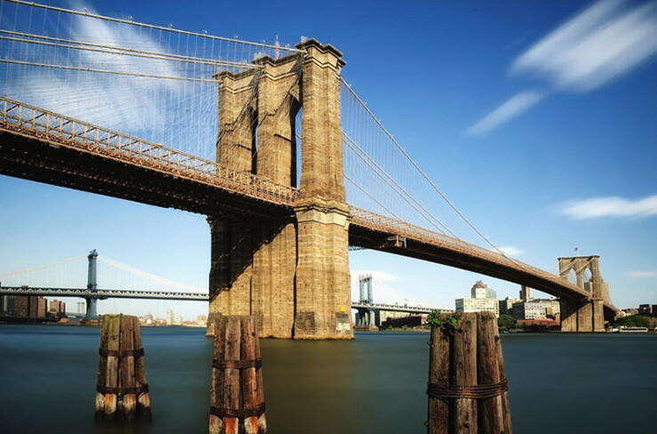 В конце 19 века, когда мост только-только начали возводить, он считался настоящим бриллиантом архитектуры. Его строили целых 13 лет и сначала он назывался Мост Нью-Йорка и Бруклина. Он стал самым большим висячим мостом в мире. И также первым мостом, в чьей конструкции были использованы стальные тросы. Первым начал строительство инженер Джон Рёблинг, который придумал два береговых пролёта и подвесную часть на опорах (80 метров высотой). И в самом начале стройки произошла трагедия: Джон был в лодке и контролировал установку свай, когда лодка столкнулась с паромом. Инженеру раздробило ногу и он вскоре скончался от столбняка. Строительство 61-летний Рёблинг успел перепоручить сыну Вашингтону, но и того ждала незавидная участь. Трагедия Бруклинского моста была не только в очевидных для строительства несчастных случаях. Для того чтобы укрепить фундамент под опорами, использовались кессоны - специальные камеры для погружения на глубину. Чтобы выгребать камни, грязь и ил со дна реки нанимали д