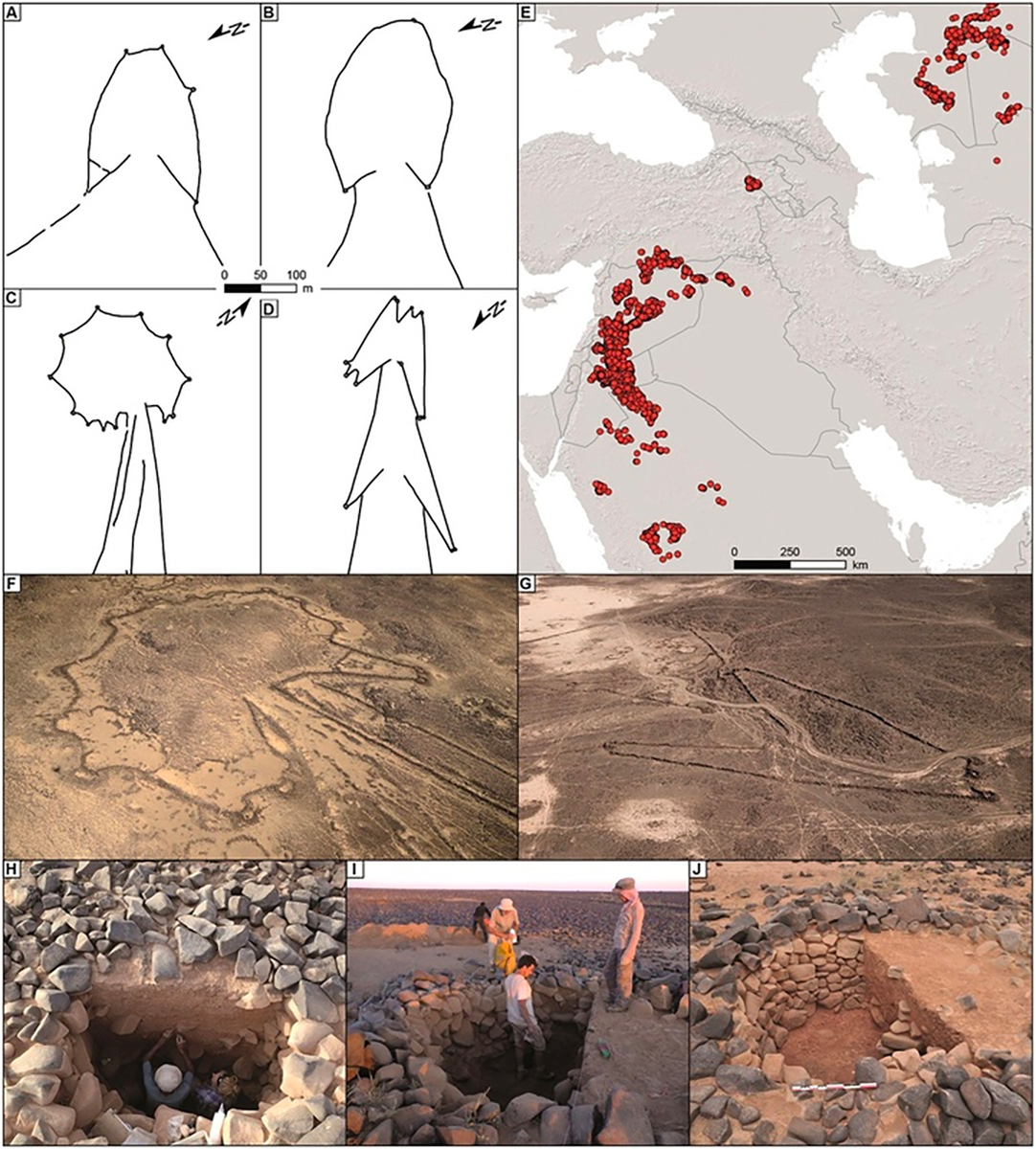 Это схемы загонов для скота. Европейские и арабские археологи нашли на территории Иордании и Саудовской Аравии два самых древних архитектурных чертежа, начерченных на скалах древними жителями Ближнего Востока около 8−9 тысяч лет назад. Это схемы постройки гигантских ловушек-загонов для животных. Исследование об этих зданиях были опубликованы в журнале PLOS ONE. Международная группа археологов под руководством ведущего научного сотрудника Лионского университета Реми Крассара утверждает, что основы архитектуры зародились еще до появления Великой пирамиды Гизы. Это выяснилось во время изучения древних «масаидов» — гигантских ловушек-загонов для антилоп и других животных трапециевидной формы, построенных в каменном веке на территории Сирии, Иордании, Саудовской Аравии и других стран Ближнего Востока. Специалисты изучали подобные сооружения на протяжении нескольких десятилетий, но только недавно Крассар и его коллеги обратили на них свое внимание. Примечательно было то, что в окрестностях с