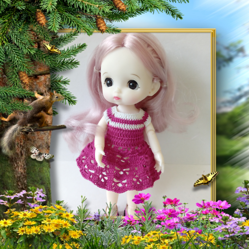 Нить обрезать, закрепить. Провести ВТО платьица. Наряд готов, можно примерять.