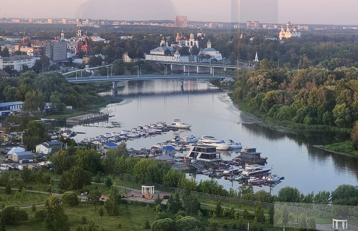 Отсюда прямо за рекой виднеется церковь Иоанна Златоуста в Коровниках.
