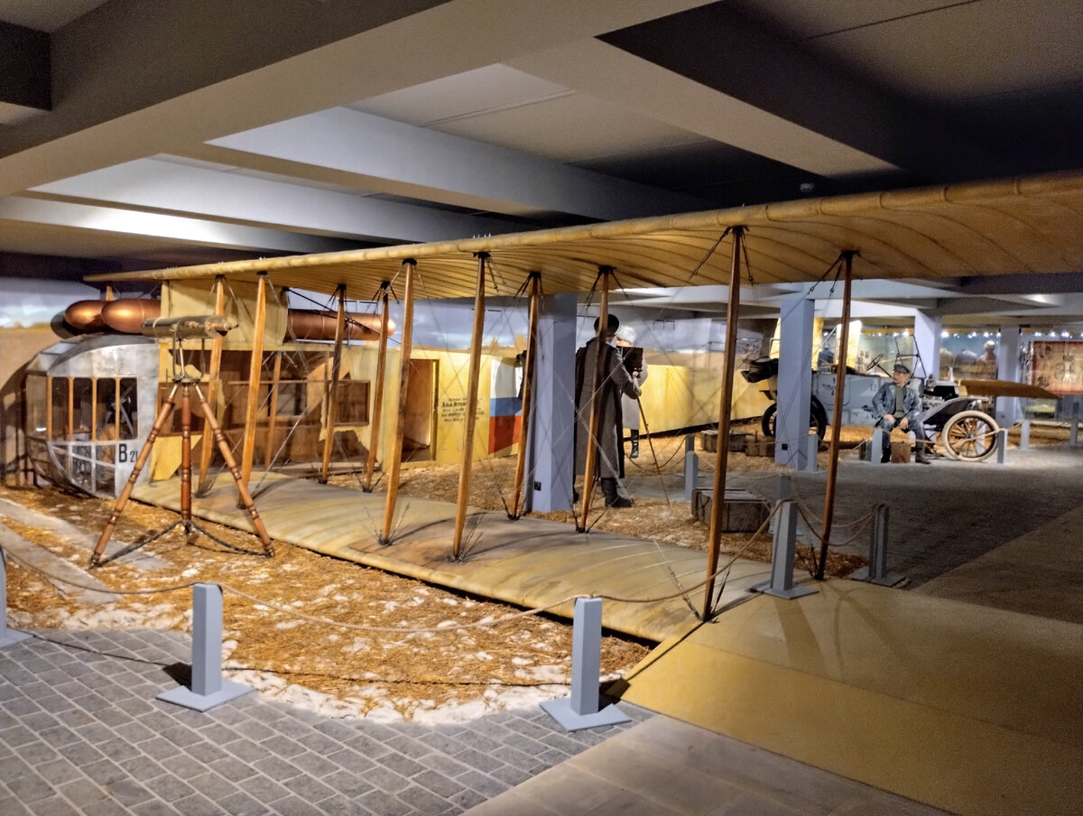В прошлом году в Музее техники Вадима Задорожного торжественно открыли экспозицию "Хроники воздушных кораблей", которая посвящена практически забытой у нас Первой Мировой войне. Значительная часть этой выставки посвящена истории создания и применения самолёта Илья Муромец, конструкции Игоря Сикорского. Это первый в мире тяжёлый бомбардировщик весьма успешно применявшийся в годы Первой мировой. Макет самолёта на месте вынужденной посадки и стал одной из центральных диорам зала. Работа над макетом, включающим в себя фюзеляж с хвостовым оперением и правую часть бипланной коробки заняла более трёх лет. Проект был заточён на максимальную достоверность, для чего были использованы сотни фотографий Ильи Муромца, собранных со всего мира. Научным руководителем проекта стал Марат Хайруллин, а Мастером, воплотившим этот стал проект в жизнь, стал ракетчик и конструктор самодельных самолётов Владимир Невский. Самолёт выполнен в масштабе 1/1 за исключением высоты, ограниченной высотой перекрытий за