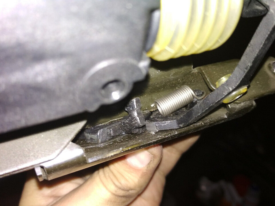 Пока менял вентиль колесного диска, вдруг неожиданно обнаружил свет в багажнике. Включил зажигание, лампочка багажника горит. Проверил — точно, багажник не закрывается. Оставлять так нельзя. Напомню что я уже чинил пружину багажника года полтора назад. Машина еще с покупки была с этой болячкой, а потом через год менял сервопривод замка багажника. Жалею что не купил новый замок в сборе (он идет сразу с сервоприводом). Пружина замка багажника Заметил что пружина второй раз сломалась с той же стороны что и в прошлый раз. Ломается она на подвижной лапке замка. А со второй стороны (неподвижной) все в порядке. Возможно подвижная лапка просто перетирает пружину. На этот раз я замок как мог смазал литиевой смазкой, в том числе и лапку и даже пружину, как раз зима на носу. Проверил как работает замок и самое главное проверил не тяжело ли сервоприводу открывать замок. Как оказалось большой нагрузки на сервопривод нет. Поэтому думаю сломанные сервоприводы могут быть только из-за заклинивания замк