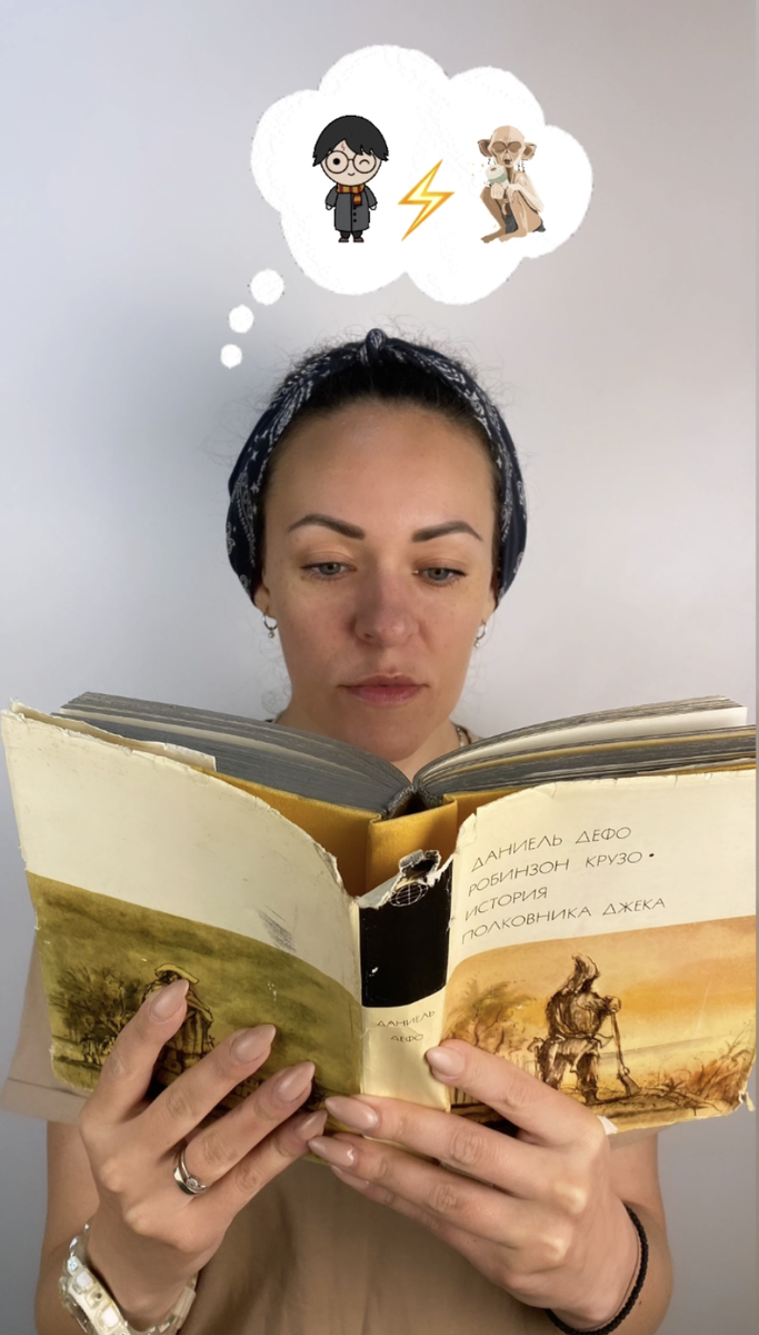 В детстве сложно было понять родителей, которые читали книги по вечерам. Хотелось подсмотреть в мамин детектив, узнать, что убийца дворецкий, рассказать маме, тогда она отложит книгу и мы будем играть в Барби. В папины книги подсматривать не хотелось уже на стадии названия «гиперболоид кого-то там». Родители напрасно пытались заманить меня в свою секту «изба читальня», по чтению до пятого класса у меня были двойки. А «детство Никиты» Толстого, в летние каникулы я читала из под палки, с шантажом, истериками и подкупом. Так всегда заставляют читать одно, а ты хочешь другое или вообще крем-брюле. Но я знаю многих, кто самостоятельно осваивал Носова, Успенского, Маршака и Бианки. Мне эту литературную «классику» читал дедушка и остальные родственники. Просто именно дедушка мечтал приобщить меня к чтению. Как-то летом, когда я жила на даче, мне всю неделю попадалась на глаза книга Даниэля Дефо «Робинзон Крузо», то она лежала на скамейке в саду, то на верстаке, то на печке, то на обеденном столе, на ступеньках на второй этаж она тоже успела полежать. Каждый день в новом месте. Я притворялась слабовидящей и старалась не замечать загадочные перемещения книги по дому и участку, но дедушка, не теряя надежды, звал вечером к себе и читал мне сам.