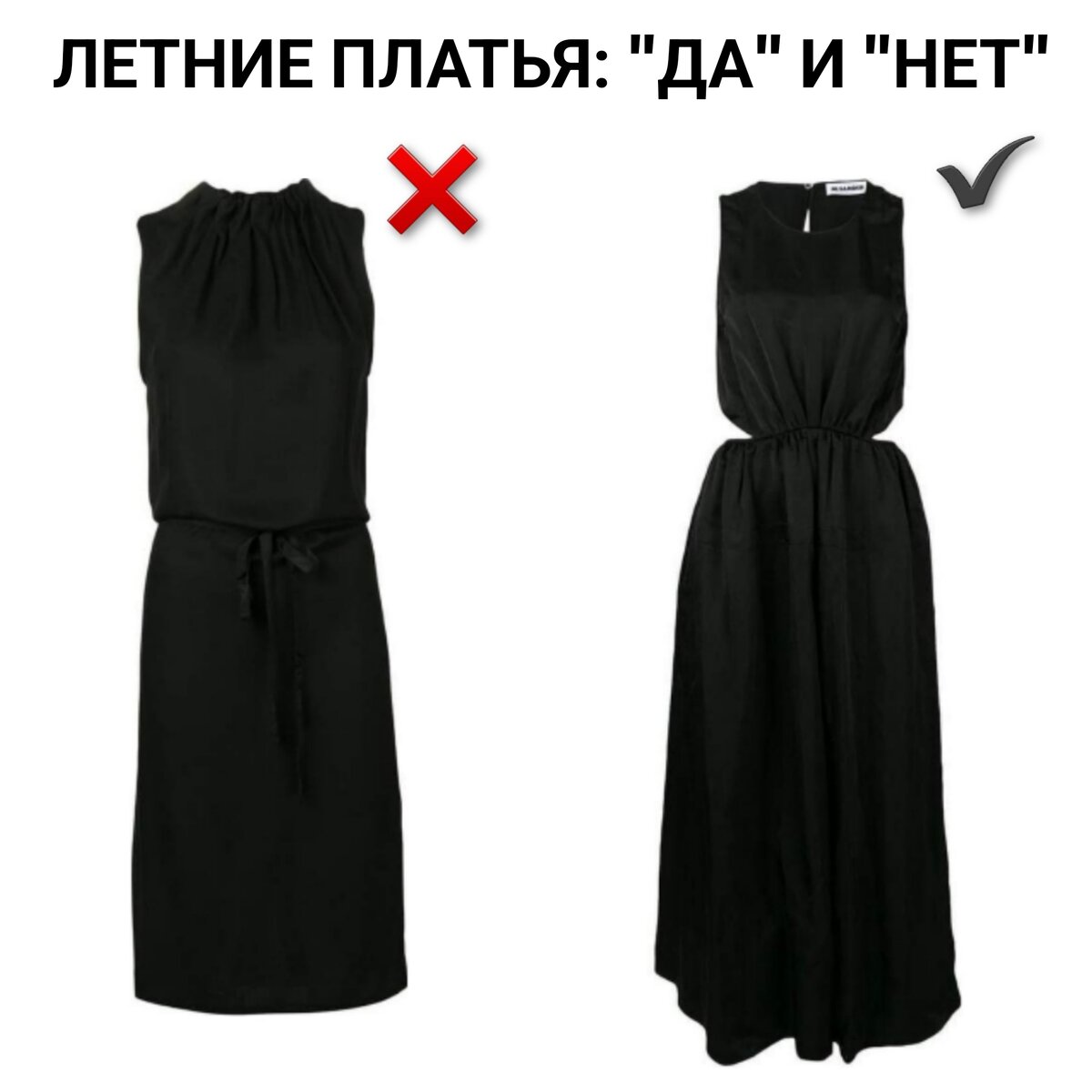 Добрались до летних платьев (в предыдущих постах обсуждали шорты, джинсы и обувь на весну) 2. Ярусные платья не будут добавлять излишнего объёма, если они из струящейся ткани. Платье слева неактуальным делает асимметричный подол и длина. 3. Платья с цветочным принтом могут добавить возраста (о других принтах с подобным эффектом рассказываю в reels). Выбирайте мелкий цветочек на светлом фоне, крой обязательно актуальный. 4. Перед заказом платья онлайн посмотрите, что оно делает с фигурой модели. Вариант слева - увеличил живот. 5. Платья с вырезами - тренд, перешедший из прошлых сезонов. Пока держится. Важно, чтобы резинки у выреза не пережимали кожу. 6. Платье-майка из тянущегося трикотажа подчеркнёт живот и покажет нижнее белье. Плотное струящееся - будет стройнить. 7. Платье-футболка сегодня - длины миди или макси (оверсайз - можно мини). Не по колено. Избегайте лишних швов - дешевят. 8. Платье рубашка - с рукавом полной длины и прямое. Осторожнее с горошком и цветочным принтам