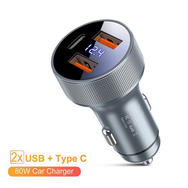 Автомобильное зарядное устройство USB USLION QC 3,0 80 Вт 5A Type C PD - это компактное и удобное устройство, которым можно быстро и безопасно зарядить ваш смартфон, планшет или другое мобильное устройство прямо в автомобиле. Одним из главных преимуществ этого зарядного устройства является поддержка технологии Quick Charge 3.0, которая обеспечивает быструю зарядку устройств совместимых с этой технологией. Благодаря этому функционалу, вы сможете заряжать свой смартфон, который поддерживает данную технологию до 80% всего за 35 минут. Кроме того, зарядное устройство оснащено выходом USB Type-C с поддержкой технологии Power Delivery (PD), что позволяет быстро заряжать устройства, поддерживающие эту технологию. Устройство имеет 2 USB порта, каждый из которых обеспечивает ток до 2,4A, что позволяет быстро заряжать два устройства одновременно. Благодаря своей мощности, данное зарядное устройство может заряжать даже ноутбуки и другие устройства с высоким потреблением энергии. Данное заряд