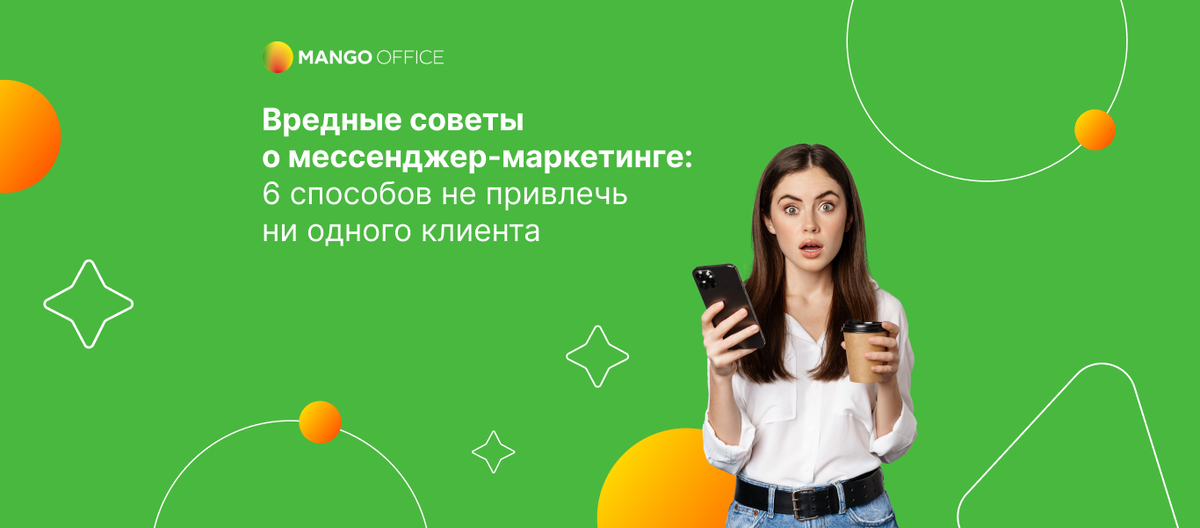 Совокупная аудитория самых распространенных мессенджеров в России (Telegram, WhatsApp, Viber, VK Messenger) превышает 100 млн человек. А это значит, что там можно найти целевую аудиторию независимо от возраста, географического положения, доходов и интересов. В мессенджерах легче вступить с потенциальным клиентом в контакт — открываемость сообщений здесь более 70 %. С помощью мессенджер-маркетинга можно повышать продажи и работать над развитием лояльности покупателей. Но если вы уже устали от общения с клиентами и не готовы привлекать новых, а хотите наконец-то побыть в тишине, покое и полном отсутствии заказов — предлагаем вам несколько вредных советов.