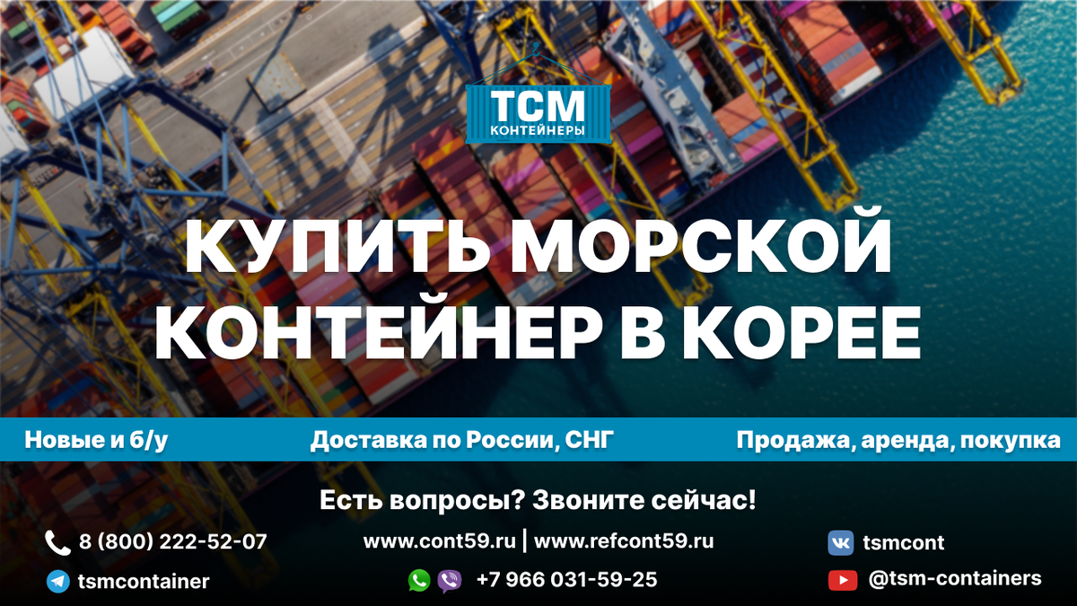 Направления, ставки, количество контейнеров по предварительному согласованию. Мы будем рады организовать покупку контейнера из Южной Кореи. Специалисты нашей компании подберут для вас необходимый контейнер, обеспечат заключение сделки и помогут с организацией быстрой доставки в Россию, Узбекистан, Казахстан. Хотите купить б/у морской контейнер в Южной Корее? Запросите коммерческое предложение по электронной почте: cont59@cont59.ru, и мы оперативно отправим Вам персональное предложение. Есть вопросы? Звоните сейчас! Наши контакты: