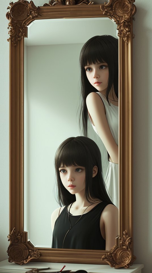Элис всегда была аккуратна и старалась выглядеть идеально. Куча дорогой косметики, два часа на макияж с утра. Постоянные походы в спортзал. Она любила смотреться в зеркало, чтобы убедиться, что ее внешность безупречна. Бывало, что девушка забывалась и могла любоваться до поздней ночи. Спустя некоторое время, началось твориться что-то странное. Когда Элис находилась у зеркала, отражение будто начинало двигаться немного неестественно, словно жило своей жизнью. Расчёсывает волосы, а рука напротив повторяет всё то же, но с небольшой задержкой. Девушка решила, что это просто ее воображение и не обращала на это внимания. Вечер уже опустился на город, когда Элис готовилась к свиданию. Она стояла перед зеркалом, рассматривая как сидело новое платье на идеальной фигуре. Вдруг девушка увидела, что ее отражение начало двигаться, но уже намного быстрее и активнее, чем раньше. Это было очень странное ощущение. Будто находишься во сне и не можешь проснуться. Элис испугалась и зажмурила глаза. Се