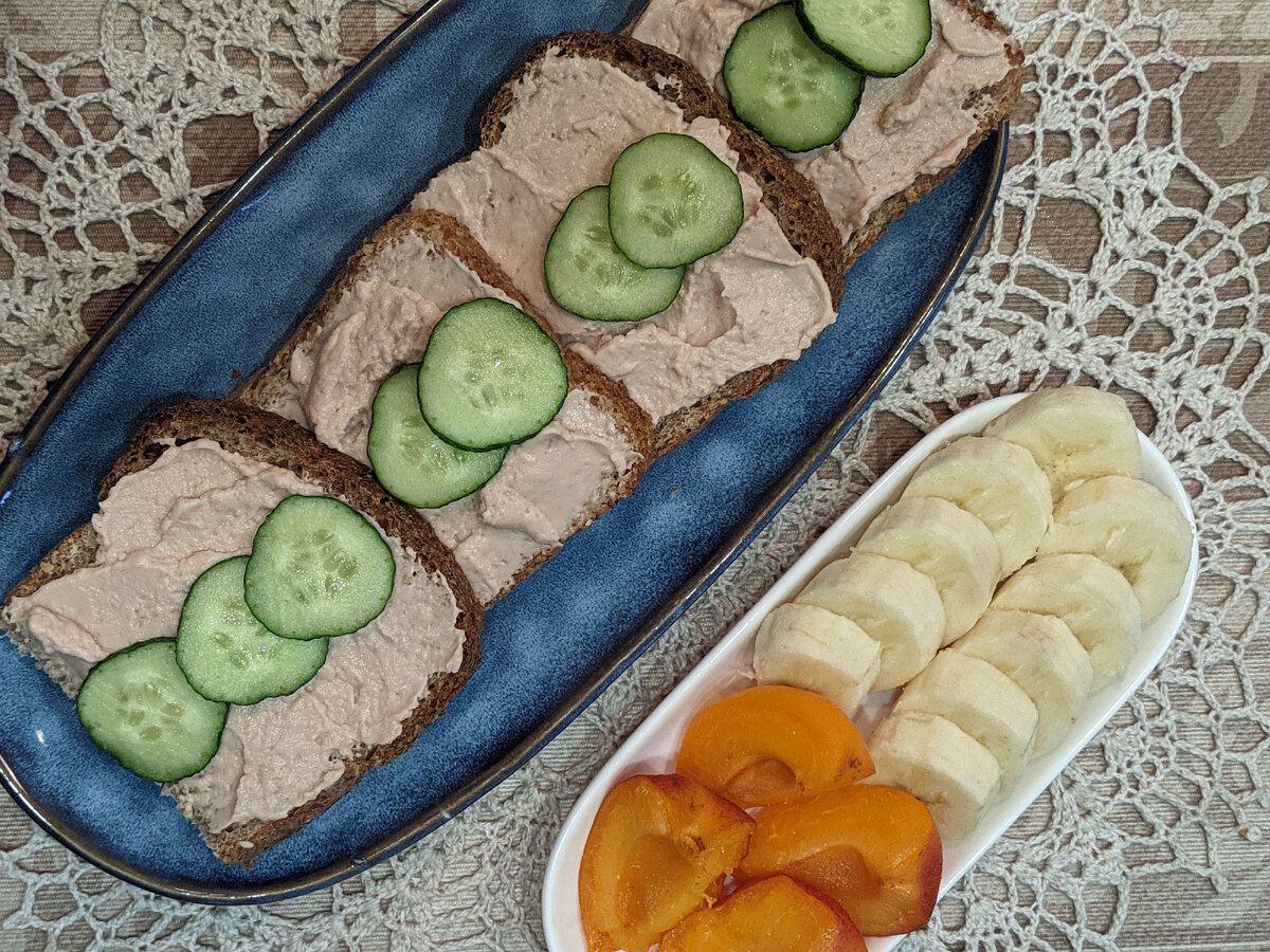 Завтрак: Цельнозерновой хлеб (Житный) с печенью по-Мурмански и огурцом. Паштетик оказался на удивление приятным и значительно менее жирным, чем печень трески. В сочетании с огурцом чудесно ☺️. Половинка банана и 2 абрикосики. Кофе с лимоном и коричневым сахаром. Обед: Обед был не по плану. Должны были обедать, как обычно в Москве, но сын сказался больным и мы разрешили ему не ходить в школу. Поэтому в 12 часов были уже на даче. Камбала и брокколи. Камбалу привезла с собой, а брокколи отварила уже на даче (брокколи покупали месяца 2 назад - дождалась 🤭). Чёрный хлеб с печенью по-Мурмански и огурцом. Овощной салат: салатные листья, огурцы, помидоры, укроп и дачный редис (!) с заправкой из оливкового масла и горчицы. Для сомневающихся он отмечен стрелочками 😆: Полдник: Коктейль из бананов и клубники. Хорошо, когда я не забываю взять с собой блендер 😆. Абрикосы. Баранка. Всё просто и вкусно 😋. А Вы с огорода уже что-то едите?