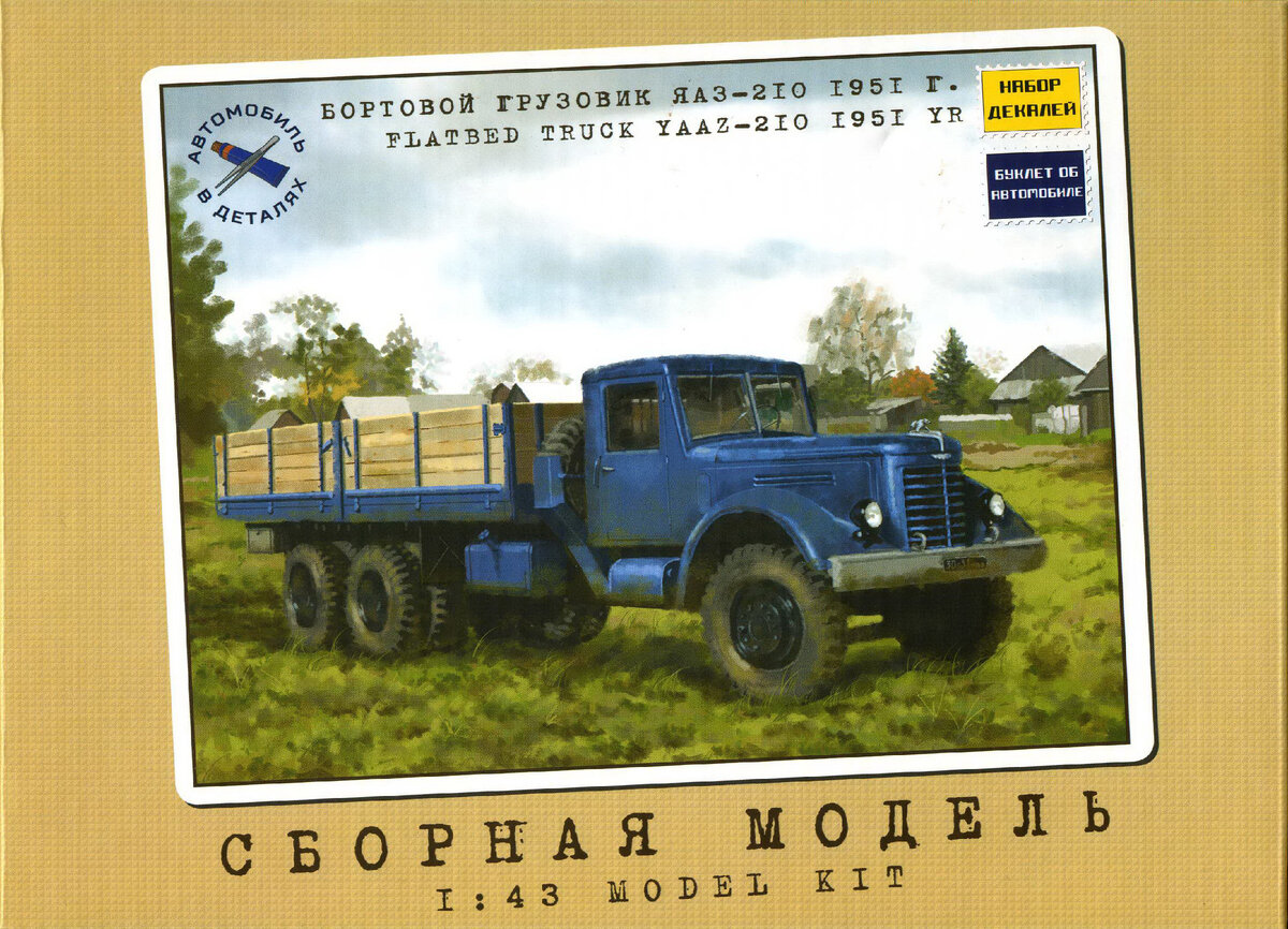 Сборная модель бортового грузовика ЯАЗ-210 (1081KIT). Производитель - Автомобиль в деталях (ныне AVD Models). Доработки: 1. поворотный мост MAECTPO-Wheels