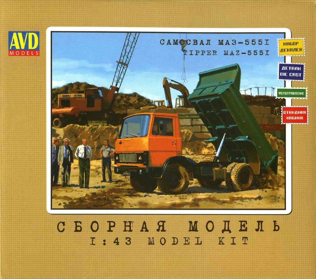 Сборная модель самосвала МАЗ-5551 (1166KIT). Производитель - Автомобиль в деталях (ныне AVD Models). Доработки: 1. поворотный мост MAECTPO-Wheels