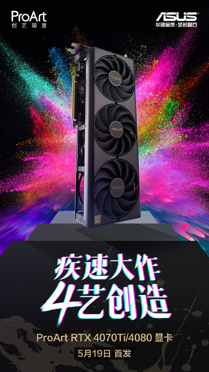 ASUS объявила о начале продаж видеокарт серии ProArt RTX 4070Ti / 4080 19 мая. Однако эти видеокарты пока не поступили в официальные магазины JD и Tmall от ASUS, и ожидается, что они будут доступны для покупки позже.
