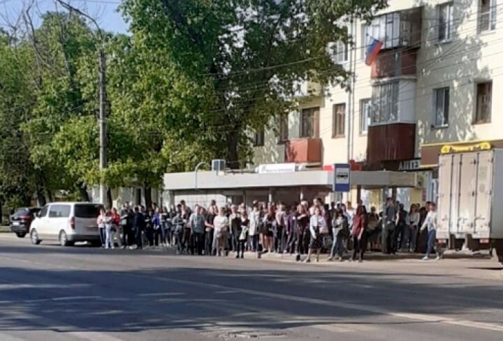 Десятки воронежцев выстроились в очередь на автобусной остановке