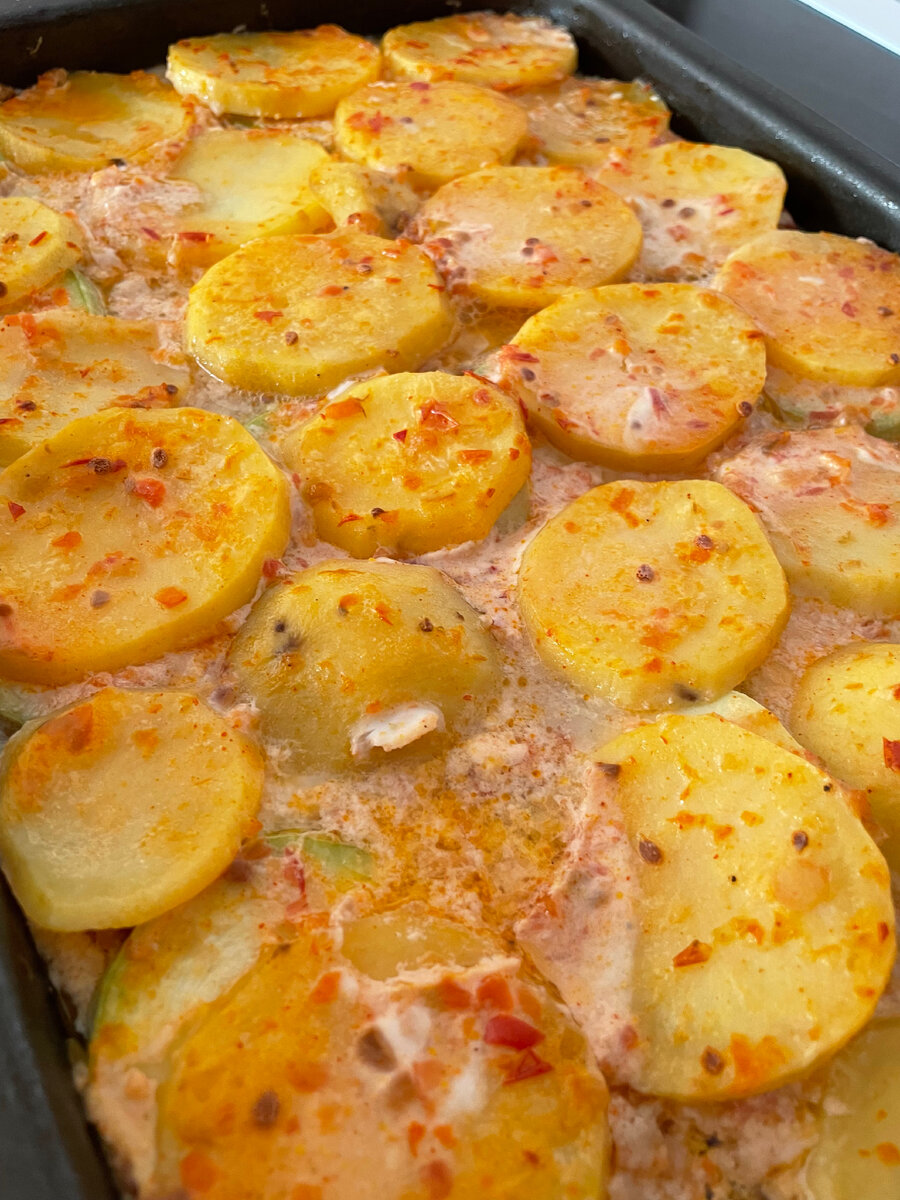 Всем привет! Сегодня на ужин готовлю легкую овощную запеканку Ингредиенты: Картофель 6-7 шт. Грибы 7-8 шт. Кабачок 1 шт. Помидор 1-2 шт. Сметана 4 ст. ложки на соус и 2 на грибы Кетчуп или не острая аджика 4 ст. ложки Яйца 2 шт. Вода 100 мл. Соль, перец и специи Приготовление: 1. Подготавливаем все овощи, режем на кружочки картофель, кабачки, тонко режем грибы и помидоры. 2. Посолить и поперчить, добавить специи в картофель и кабачки, перемешать. Выложить половину слоями - сначала картофель, поверх кабачки 3. Нарезанные грибы сложить в глубокую тарелку, добавить 2 ложки сметаны, 1 яйцо, соль, специи и перемешать, выложить ровным слоем на кабачки. 4. Нарезанный помидор выложить поверх грибов. Далее на помидоры положить оставшиеся кабачки и заключительно картофель 5. Для соуса смешать сметану, кетчуп (аджику), 1 яйцо, воду, посолить и добавить специи по вкусу. Затем залить ею овощи 6. В разогретую духовку на 180 градусов на 40-60 мин ПРИЯТНОГО АППЕТИТА!