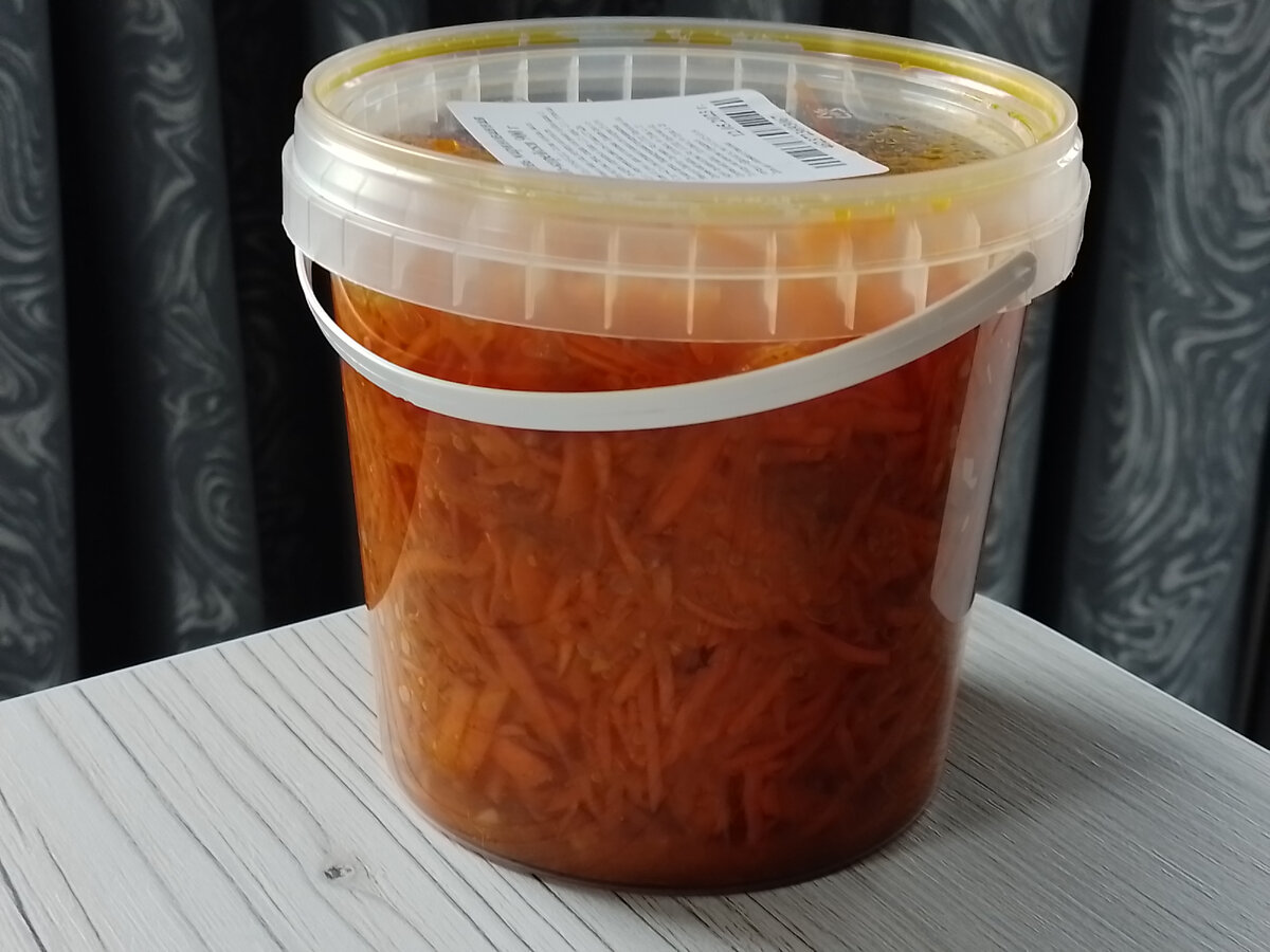 Я люблю готовить морковь по-корейски сама по этому рецепту. На свой вкус добавляю специи. Не люблю острое. Но, увидев в "Светофоре" ведерко моркови за 92 рубля не смогла пройти мимо. Произведено индивидуальным предпринимателем Невзоровым В.С. в Кировской области. Дата производства - 12 мая, свеженькая. Срок годности 90 суток. Состав отличный: морковь, растительное масло, сахар, соль, уксусная кислота, перец, специи. Ну и консервант, конечно. Без него срок годности был бы слишком коротким. Жаль, что не указано, какие именно специи добавлены. На вид и на вкус морковь оказалась очень даже неплохой. Я ожидала худшего. Даже мужу понравилось, хотя он такое не любит, морковь предпочитает с чесноком и майонезом. Для меня немного островато, просто так есть не смогу, только с чем-то. Отлично будет добавить в шаурму. Если вам нравятся мои отзывы, подпишитесь на мой канал и ставьте лайки. Буду очень признательна! До новых встреч!