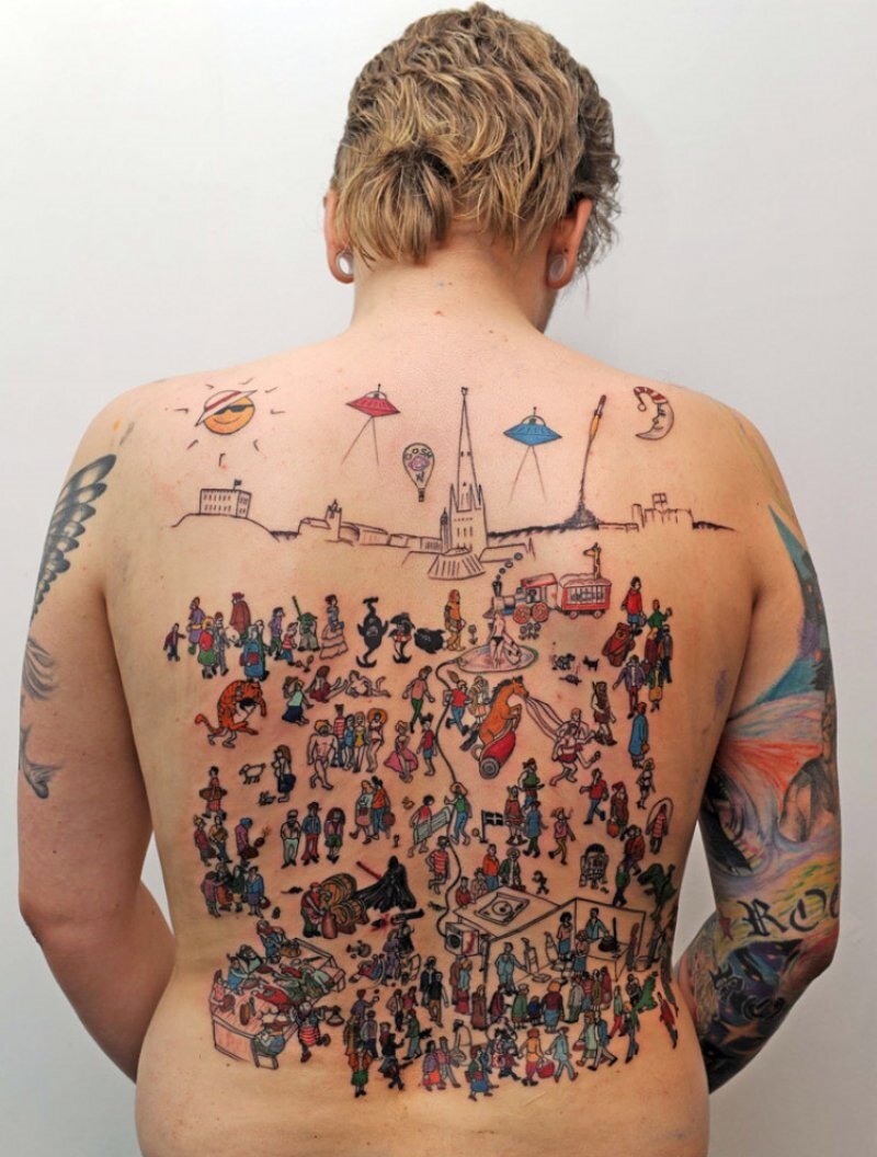 Кольщик, наколи мне все подряд, Крест немецкий, рядом кошку с тапками. Светофор и трех солдатов в ряд, Принтер, флэшку, документы с папками. Наколи на жопе кенгуру И велосипед с большими фарами, На плече набей певца Шуру, Рядом октябрят стоящих парами. Если места хватит наколи Дом с трубой, тарелку супа полную, Телевизор и троих косуль, Чтобы навсегда меня запомнили. Ты набей мне творог и кларнет, Буратину с Чиполином, в валенках, Наколи на блюдце винегрет, Профиль Цоя, три цветочка аленьких. Если сможешь ,то набей ежа, Гимн России на румынском выколи, Три огромных кухонных ножа, Малышей, чтоб у калитки сикали. Бутерброд мне с сыром наколи, И тетрадку в клетку цвета алого, Голубя сидящего в пыли, А под мышкой тойтерьера мАлого. Наколи танцующих бомжей, Наколи как мышь енота трогает, Наколи гадюку и ужей, Наколи… и пусть стереть попробуют… Иван Чертищев