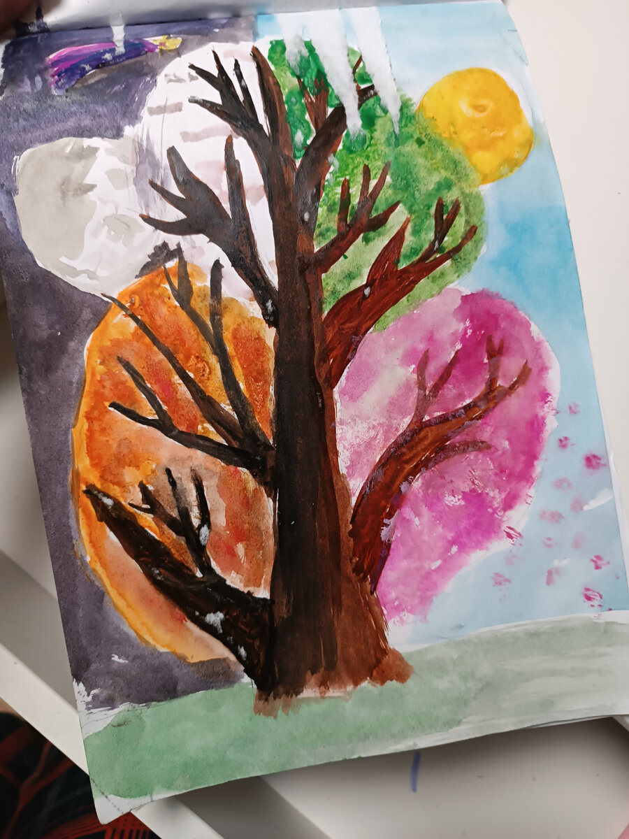 Изо по моему кайфовый предмет! Наверное это только в пятом классе. В началке мы рисовали строго по инструкции. Не знаю как там дальше обстоят дела с рисованием, но в пятом классе изо — это круто. Просто задали тему, а дальше твоя фантазия! Да там в каждый рисунок можно впихнуть, что захочешь. В этот раз — дерево жизни. Смотрите что у меня получилось: