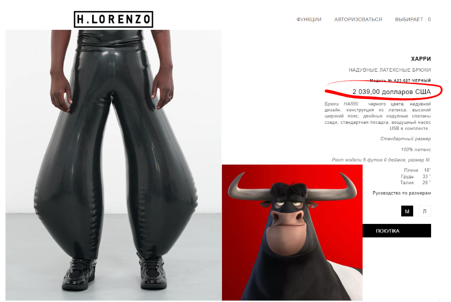 Ждали все! Теперь это можно купить. А то только по показам мод дефилировали в такой красоте. Девушки - не завидуйте, хотя сейчас все унисекс, но эту одежку мальчики представляют. Я уже почти побежал покупать, но санкции, не получилось. Правда и с финансами промах - не хватает 2030 долларов. (и это только на штаны) А хотелось бы еще и латексную маечку. Но там еще 339 долларов нужно выложить. Хотя я рано расстроился, там еще желтенькие есть - дешевле почти в два раза. Но не хочу, потому что к ним нет желтой майки, только белая. Кто уже примерял - не жарко в этом прикиде?