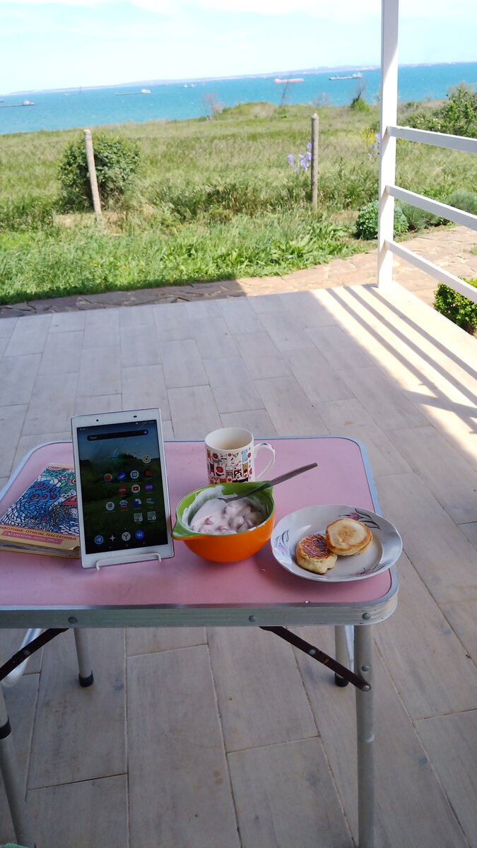 Сегодня у меня на завтрак сладкая крымская клубничка (уже давно в продаже) с джанкойской нежной сметаной и оладушки на крымском свежайшем густом кефире. Яйца в тесте были тоже от местного производителя - как домашние, с оранжевым желтком. Ммм... Вкусно!