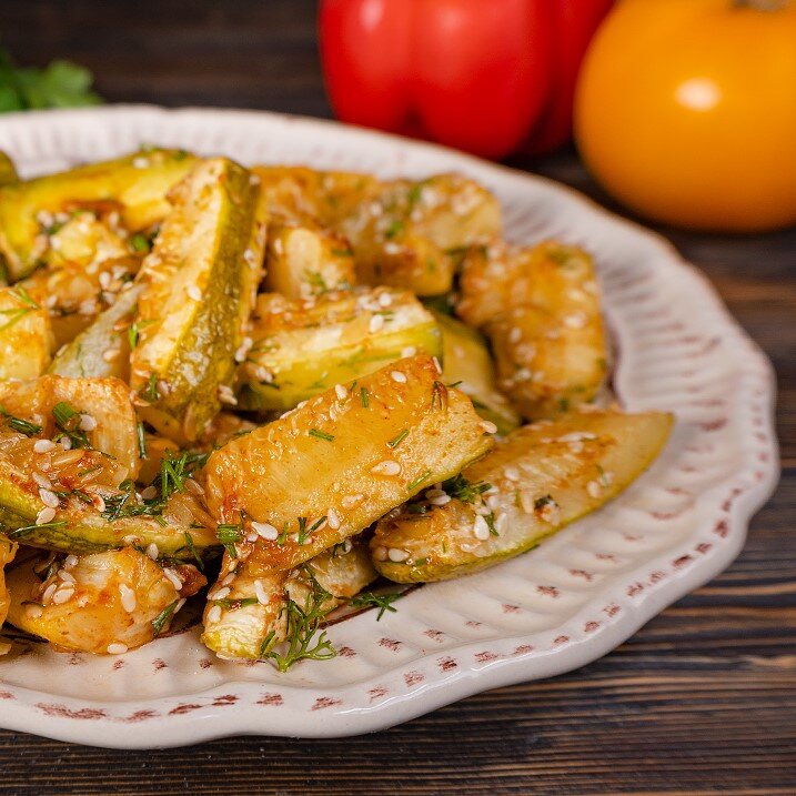 Закуска из кабачков может подаваться как в горячем виде (стоит только заправить соусом), так и в холодном, когда вы позволите ей настояться и пропитаться соусом. Выбирайте свой вариант.