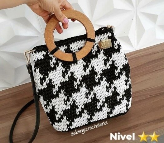 Подборка из 11 идей по вязанию крючком модных, стильных сумок жакардным узором "Гусиные лапки" (фото, схемы, описание вязания)