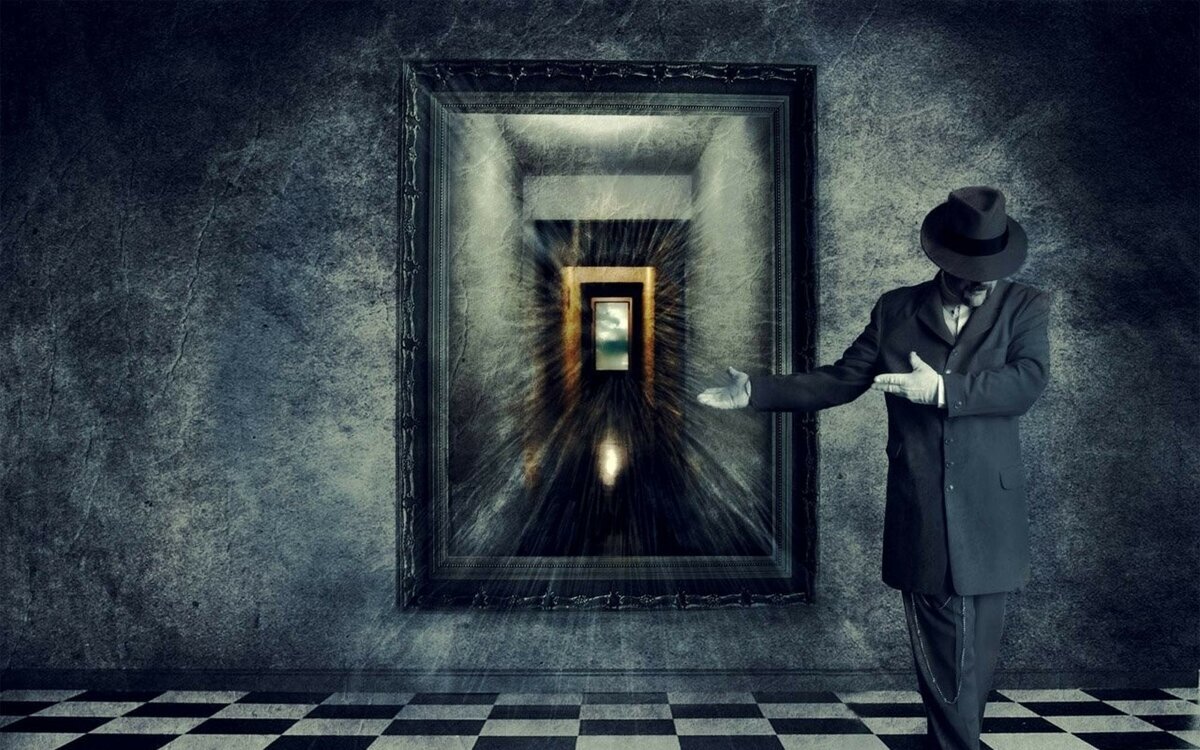 Одно из зеркал манило меня. Справа снизу стены. Зов зигзагом проносился в воздухе. Я медленно повернулся туда, подошёл, заглянул. На меня с недоброй усмешкой посмотрел маленький уродец, обитающий по ту сторону искривлённого зеркала, поверхность которого как будто стекала, застыв на месте. Я вздрогнул, зажмурился и отвернулся. Но что-то неумолимо тянуло меня. Зов зигзагился всё ярче и ярче, громче и громче. Я сильнее зажмурил гл