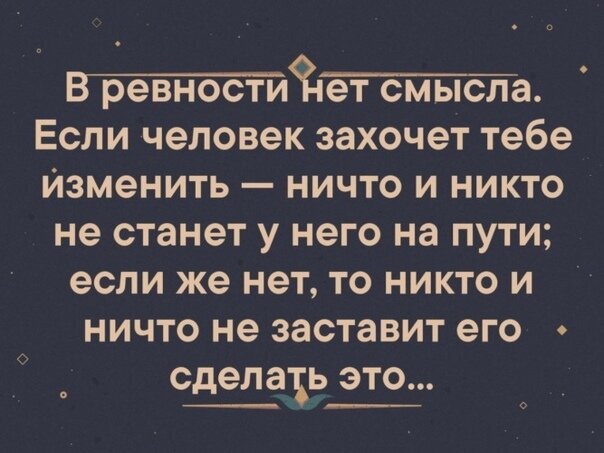 Ревность – мрачное чувство. Возникает она как цунами, и нет профилактики от ревности: ведь никогда не знаешь, когда она появится. У тебя бывают необъяснимые моменты, когда сидишь дома, в пустой квартире и вдруг начинает ныть душа? Ты еще не знаешь, что именно произойдет, но уже предчувствуешь: что-то угрожает твоему счастью. Ты подходишь к окну, к часам, опять к окну, опять к часам, и хотя понимаешь, что ждать мужа еще рано и нет оснований для беспокойства, но тревога уже охватила тебя. Бешено колотится сердце, ты нафантазировала такое…