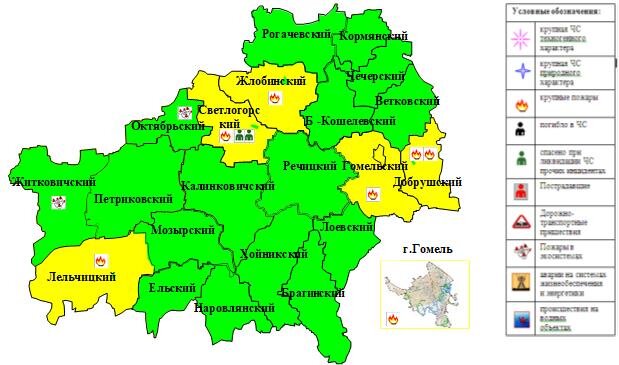 За прошедшие сутки в Гомельской области зарегистрированы 7 пожаров, на которых спасены 2 человека, повреждены 4 строения и 1 единица техники. Ликвидированы 1 пожар травы и кустарника на площади 0,01 га на территории Житковичского района и 1 лесной пожар на площади 0,06 га на территории Октябрьского района (техника МЧС не привлекалась). На оказание технической помощи спасатели выезжали 4 раза. 19 мая в 14:37 поступило сообщение о пожаре в жилом доме в д. Высокий Полк Светлогорского р-на Гомельской области, принадлежащем гражданке 1949 года рождения. До прибытия подразделений МЧС населением спасены проживающие в доме с разрешения хозяйки гражданин 1986 года рождения и гражданка 1977 года рождения. Причина пожара устанавливается.