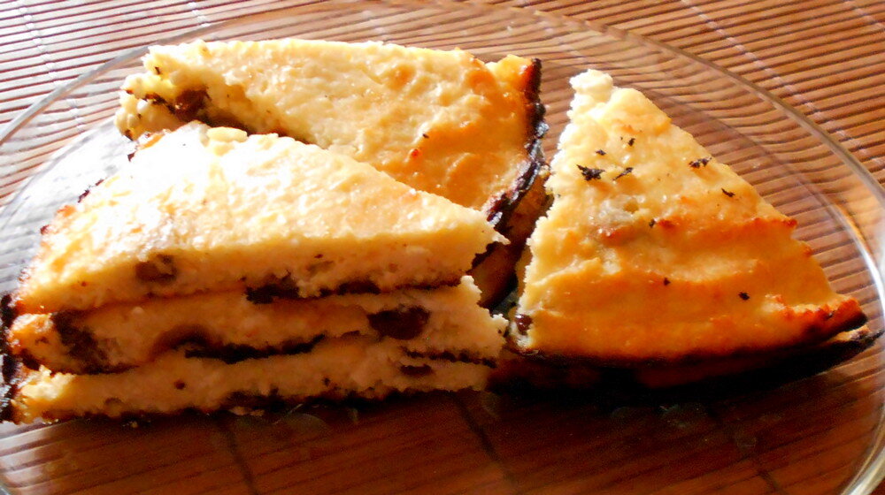 Сто лет не ела творожную запеканку :) В основном, довольствовалась сырниками (или, вернее, творожниками). Впервые приготовила её сама. По внешнему виду получилась так себе, зато вкус... просто удивительное наслаждение! Жаль только, что запеканка оказалась маленькой и была поглощена очень быстро) Поделюсь с вами простейшим рецептом ;) Для приготовления нужны следующие продукты: · 300 г творога любой жирности по своему усмотрению (я использовала 5%); · 1 куриное яйцо; · 1,5 столовые ложки сметаны (у меня 20%); · 1,5 столовые ложки сахара; · 1 столовая ложка манки; · 1 столовая ложка сливочного масла; · 50 грамм тёмного изюма. Процесс приготовления: 1. В миску выложить творог и растереть его вилкой. 2. Растопить небольшой кусочек сливочного масла и вылить к творогу. 3. Взбить яйцо с сахаром и соединить с творогом. 4. Добавить манку, щепотку соли и ванилин на кончике ножа. 5. Всё тщательно перемешать. 6. Добавить промытый изюм и опять равномерно перемешать. 7. Выложить в форму для выпечки