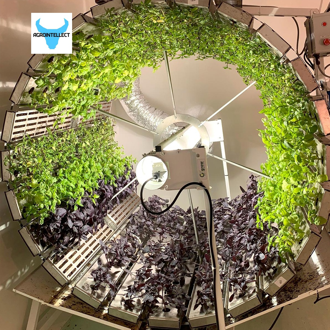 На выставке medFEL 2023 года компания Futura Gaïa презентовала необычную вертикальную ферму, которая представляет собой цилиндр, вращающийся вокруг лампы, а сила вращения позволяет воде постепенно проникать к корням растений, благодаря силе тяжести.