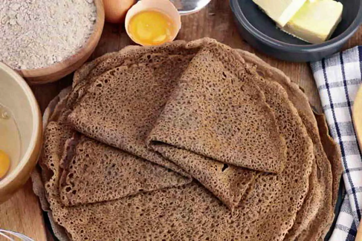 Блины – одно из самых древних русских блюд. Они использовались еще в ритуалах язычников. Кстати, Масленица, на которую принято печь блины, – древний языческий праздник. Тесто делали не из привычной пшеничной муки, она появилась несколько позже. Люди перемалывали овес, рожь и другие зерновые. Для гречневых блинов вам понадобятся: гречневая мука – 1 ст.; пшеничная мука – 1 ст.; дрожжи – 15 г; молоко – 2 ст.; сахар – 1 ст. ложка; куриные яйца – 2 шт.; сливки – 50 г; сливочное масло – 1 ст. ложка; растительное масло для жарки. Высыпьте в большую миску гречневую муку и сахар. Добавьте 1 ст. теплого молока с разведенными дрожжами. Перемешайте и поставьте в тепло. Когда тесто начнет подниматься, вылейте оставшееся молоко и добавьте пшеничную муку. Снова поставьте миску в тепло. В это время разотрите сливочное масло с сахаром, добавьте яичные желтки. Белки взбейте со сливками. Размешайте все с тестом и оставьте его в теплом месте еще на 20 минут. Жарьте блины на смазанной маслом ск