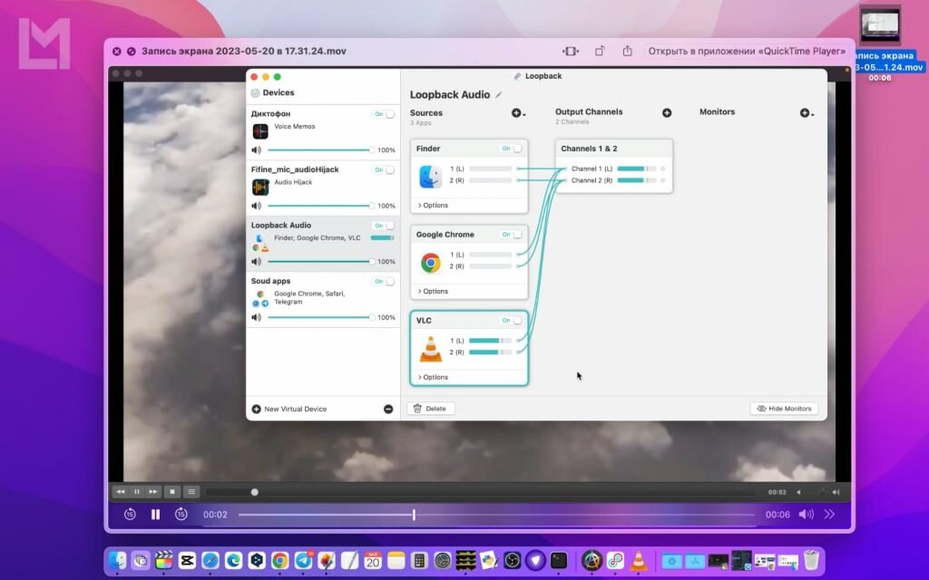 В компьютерах Apple есть отличная встроенная программа для захвата фото и видео с экрана macOS. Ей удобно и быстро делать скриншот экрана, окна или выделенной области. Так же она может делать видео захват экрана. Горячие клавиши и что еще можно настроить в ней подробно написано на официальном сайте apple. Но если вам нужно сохранить видео запись экрана со звуком, то это, к сожалению, не так просто. При записи в видео, звук программа будет брать с микрофона. Если вам нужно прокомментировать происходящие на экране, то замечательно. А если нужный звук происходит в системе, браузере, плеере, тогда качество звука из внешнего динамика, записанное на микрофон, будет просто ужасное. Что сделать, чтобы запись видео шла со звуком Все программы записи, например OBS, берут в качестве источника звука устройство выбранное в приложение «Системные настройки» — «Звук» — «Вход». Это касается и встроенной функции захвата экрана macOS. По умолчанию это будет встроенное физическое устройство «Микрофон». Ре