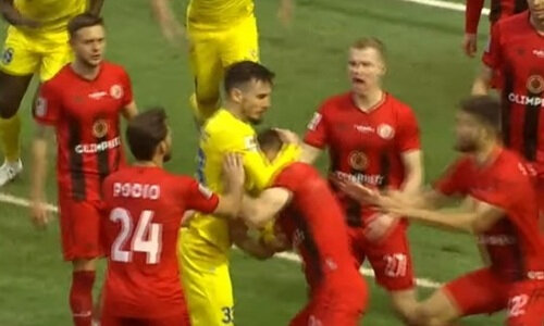 В матче десятого тура Казахстанской Премьер-Лиги между «Астаной» и петропавловским «Кызылжаром» (3:2) произошла стычка футболистов, сообщает Sports.kz. Матч лидеров «Астана» — «Кызылжар» завершился победным голом на 97-й минуте На 91-й минуте игры капитан «Кызылжара» Еркин Тапалов оказался на газоне, после чего ему что-то сказал черногорский защитник Жарко Томашевич. Нападающий петропавловской команды Максим Чиканчи решил вступиться за партнера по команде, оттолкнув Томашевича. Комментатор встречи описал эпизод: «Это что-то из ММА». Видео момента можно посмотреть ниже. Отметим, что «Кызылжар» после этого матча располагается на второй строчке турнирной таблицы с 22 очками, а «Астана» на первой позиции с 25 баллами. ФК «Астана»