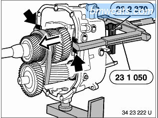 Вроде все? А нет и не все! И никто и нигде почему-то не рассказывает о самом важном моменте в обратной запрессовке первичного вала. Может просто у людей не те коробки и нет таких проблем. Дело в том, что для вытягивания первичного вала по мануалу используется хитрое приспособление на иллюстрации выше.