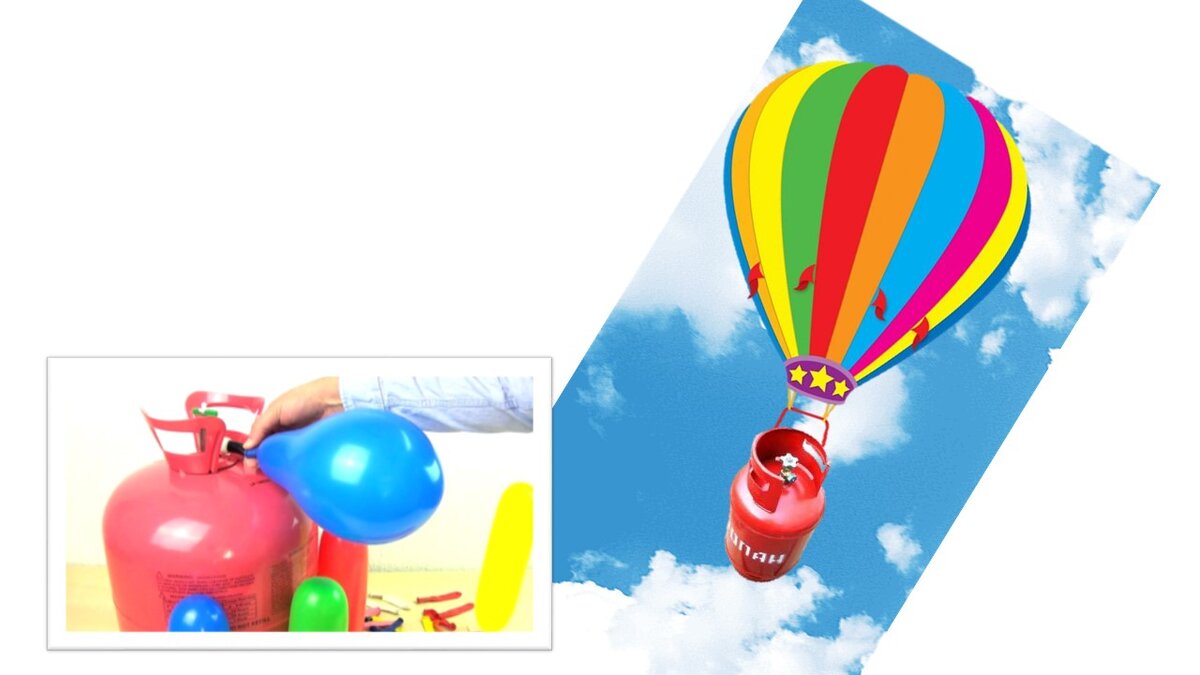 Одним из способов запоминания лексики на английском языке является ассоциативная связь с русским словом, например, слово «balloon» – похоже на русское «баллон» и чтобы его запомнить, можно представить себе такие картинки: (шарик "balloon" надувают газом из баллона или воздушный шар "balloon" вместо корзины везет баллон с газом):