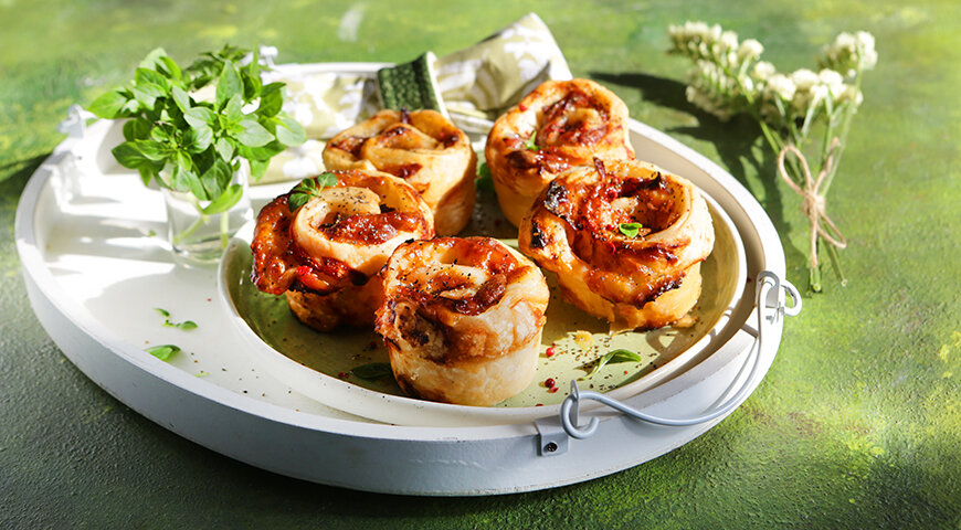 Кто сказал, что закуски не могут быть настоящим шедевром? Сегодня мы предлагаем вам попробовать закуску, которая точно станет главным героем вашего следующего праздника. Ароматный бекон, сочный сыр и нежное тесто - все это в одном блюде! Готовы узнать рецепт? 😉Тогда давайте начнем ⬇️ Слоеное тесто любят практически все, а бекон, попадая в духовку, источает аромат копченостей, вызывающий желание немедленно его съесть. Кстати, исследователи доказали, что чаще всего люди, придерживающиеся строгих диет, срываются именно из-за бекона-искусителя. Что уж говорить о сочетании с сыром и нежным тестом. Если базилик не ваша любимая зелень, смело используйте другую - привычные укроп или петрушка вполне подойдут. Единственный недостаток закуски с беконом и сыром - слишком быстро заканчивается. Ингредиенты: 1 упаковка слоеного теста 200 г полутвердого сыра 12 полосок бекона 2 ст. л. кетчупа 1 ч. л. сушеного базилика 2 ст. л. муки для посыпки рабочей поверхности 2 ст. л. растительног