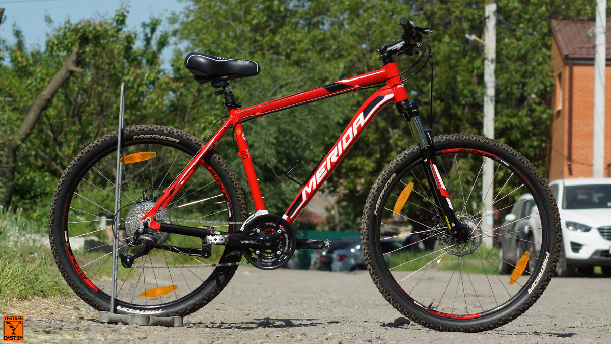 Давненько в мою мастерскую не заглядывали «Меридки», а это между прочим одна из любимых моих марок. В последнее время, этот бренд шагнул далеко вперед, и топовые модели могут запросто потягаться с другими, не менее известными. На ТО прибыла классическая MERIDA BIG seven 40 на 27 колесах, в классическом ярко-красном цвете, который виден еще издалека. Вел прибыл, покрытый как минимум миллиметровым слоем пыли. Самой модели уже прилично лет. Он занимала среднюю ступеньку в своей линейке, и в свое время стоила довольно ощутимо. Осматриваем колеса. Восьмерок практически нет, все в пределах нормы. Смазка во втулках уже устарела и смешалась с грязью. Чистим, смазываем, собираем обратно. Параллельно чистим обода и спицы. Цепь еще не растянута, поэтому просто чистим, и параллельно ставим замок. По тормозам также вопросов нет. Надежная механика от PROMAX 310, классика, проверенная временем. Такие машинки никогда не подведут. Раскручиваем вилку, в целом состояние нормальное. Защитный слой порядочн