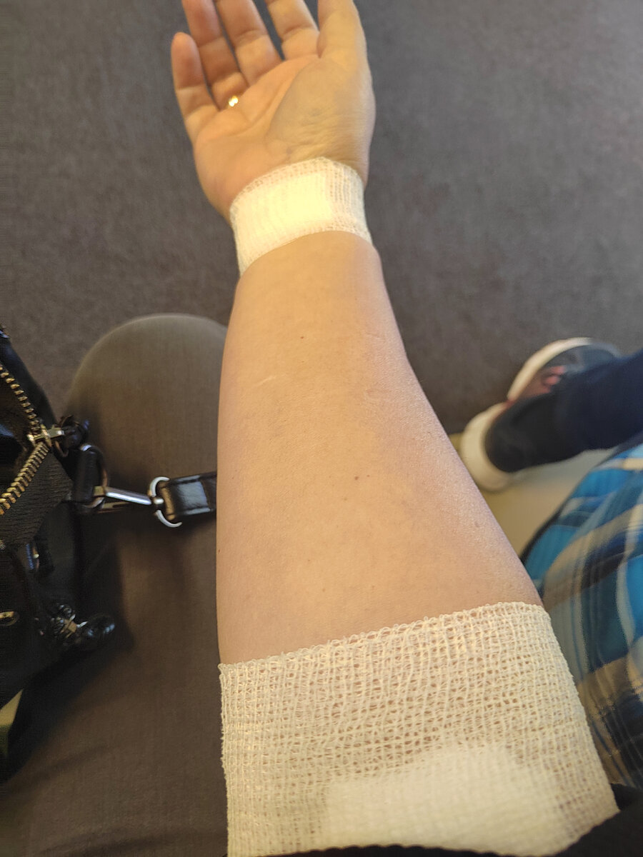 Вот и денек получился, активный. Приехали утром со списком от онколога в Хеликс. Ну не повезло мне сегодня. Кровь не пошла с двух вен, по одной пробирке даже не набралось. Решила медсестра рискнуть и взять из кисти правой руки, потом из запястья, предупредила, что будет больно. Я думала, что мне уже ничего не страшно, но было ощущение, что рука в кипятке или ее отрезают. А всего-то пытались взять кровь. После третей неудачной попытки я уже с ваткой у носа лежала на кушетке и вокруг меня суетилась медсестра. Человек 15 ждали своей очереди и у некоторых были очень испуганные лица, когда я вышла бледная как мумия и вся в бинтах (4 штуки), и начала пить воду из кулера. Выпила воды 5 стаканчиков, отдохнула и все получилось с первого раза. Уже представляла, как придется возвращать оплату и ехать еще раз. Рука болела часов 5 потом, причем сильно. Медсестра отличная, просто вены у меня проблемные. Сомнительное конечно удовольствие за 10 тысяч, но надо. Кроме анализов для химиотера