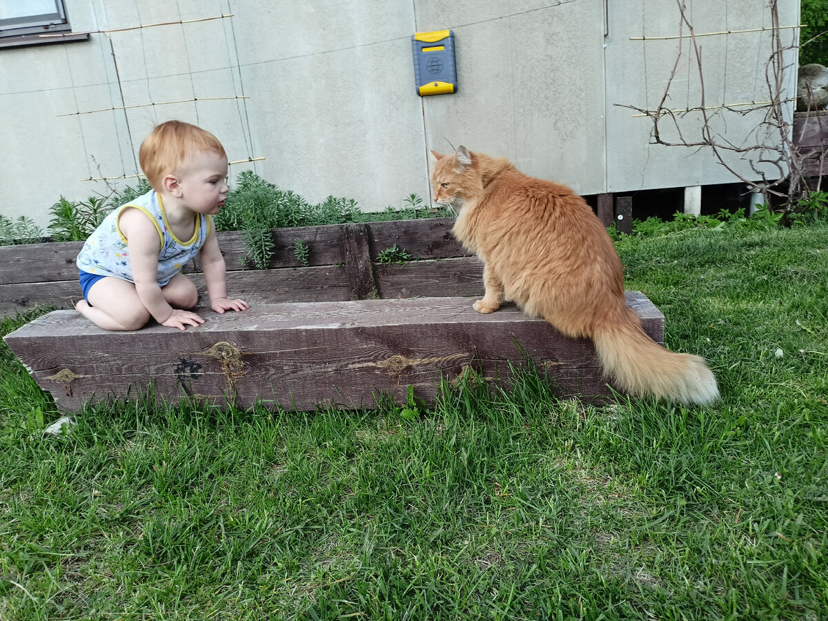 В больницу мы ложились весной, а когда выписались - стояло уже полноценное лето. Такое густое, что его, казалось, можно мазать на хлеб. Ленька нырнул в него без разбега, просто отказываясь бывать дома. Мы сажали рассаду, ездили на рынок за саженцами, жарили вечерами колбаски и пытались запускать змея. В общем, все то, что куда лучше передают картинки, нежели слова. Даже в фильмах такие периоды передают нарезкой под красивую музыку, потому что реально информативного в них мало. Такие отрезки оставляют хорошее послевкусие, но чтоб о них рассказывать нужен особый талант, которым я не обладаю. Легко описывать только новое. Благо с ребенком нового всегда достаточно. В Лёне что-то сдвинулось и он больше не считает передвижение на четвереньках базовым. Т.е., конечно, именно так он до сих пор и перемещается в пространстве, но уже хотел бы иначе. Лёня пытается пройти сам, падая на колени после двух шагов. Он больше не возражает, когда ему помогают, поддерживая за руки. Просто теперь по реб