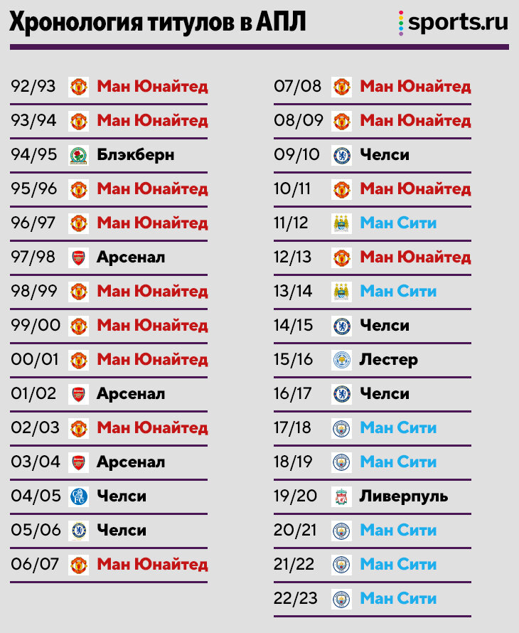 5 титулов за 7 лет с Гвардиолой. «Арсенал» проиграл «Ноттингем Форест» – и автоматически сделал «Ман Сити» чемпионом. 5 титулов Пепа за 7 лет – очень много для АПЛ. В последний раз так мощно доминировали только в 90-х – «Ман Юнайтед» Алекса Фергюсона выиграл 6 титулов за 8 лет. Не забываем, что «Ман Сити» обладает рекордом лиги по набранным очкам: в сезоне-2017/18 пробил отметку в 100. В рейтинге с самыми мощными по набранным очкам чемпионствами тоже очень много «Сити». И еще немного рекордов «Ман Сити» – хотя из как раз очень много! И совместных. Контракт Гвардиолы – минимум до 2025-го. Какие еще рекорды побьет «Ман Сити» с Пепом? «Ман Сити» – это наука футбола и искусство одновременно. От них не оторваться! Фото: globallookpress.com/IMAGO/Andrew Yates