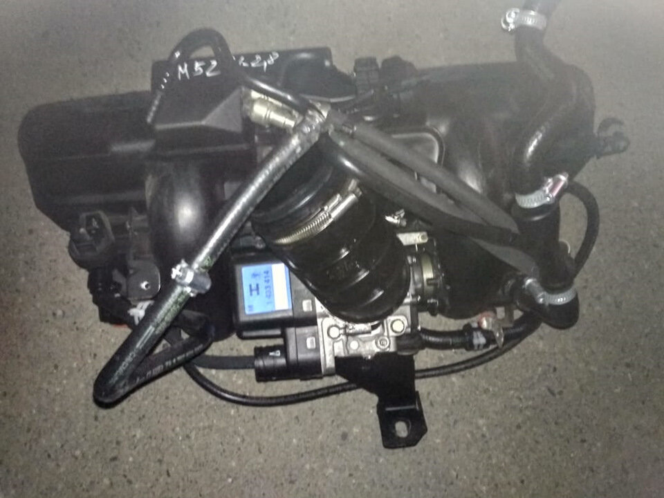 Кто сказал что нужно снимать дису, планку вентиляции, дроссель и КВКГ. В общем я просто снял, не разбирая ничего. Начал прокладывать проводку. Друг мне сказал что лучше снимать коллектор. Зная свой M52 у меня и мыслей других не было, но что-то мне подсказывает, что снимать коллектор это лишняя заморочка, на M52/TU коробка просто проходит вокруг коллектора и заходит под него.