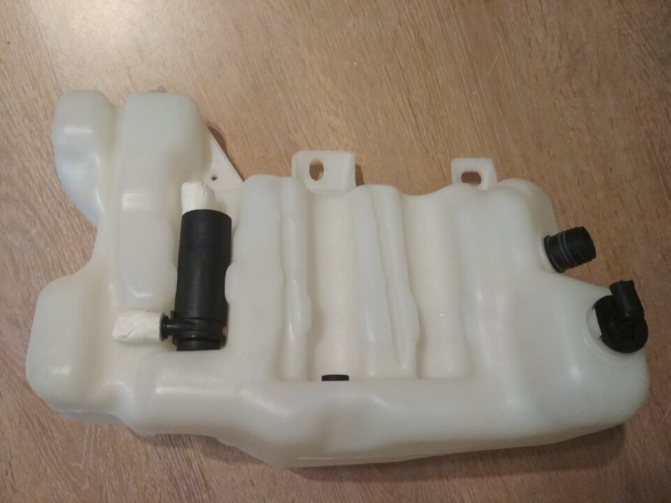 Не так давно менял моторчик бачка омывателя и добрый человек мне сказал, почему бы мне не поменять свой маленький 3.5л бачок на 7.0л от автомобиля с омывателем фар. Очень благодарен ему за совет. Сказано — сделано! Бонусом достались моторчик омывателя лобового стекла, моторчик омывателя фар, датчик уровня и все резинки. Как хорошо когда продавец не вытаскивает каждую мелкую детальку в расчете ее потом кому нибудь продать, из практики всю эту мелочь никто не купит и она будет десятками лет гнить в огороде пока ее не спалят в костре. Моторчик омывателя фар решил оставить на законном месте. В будущем сделаем омыватель фар, но не все сразу. А пока что защитил фишку моторчика, чтобы в нее не летел мусор и не текла вода. Все резинки в бачке уже в возрасте. Это значит что они еще живые и не потрескавщиеся. Но резина немного мажется когда держишь ее в руках и трешь ее пальцами. Эти еще походят, а вот резинка под моторчик омывателя лобовухи уже потрескалась. Заказываем новую, притом заказываем