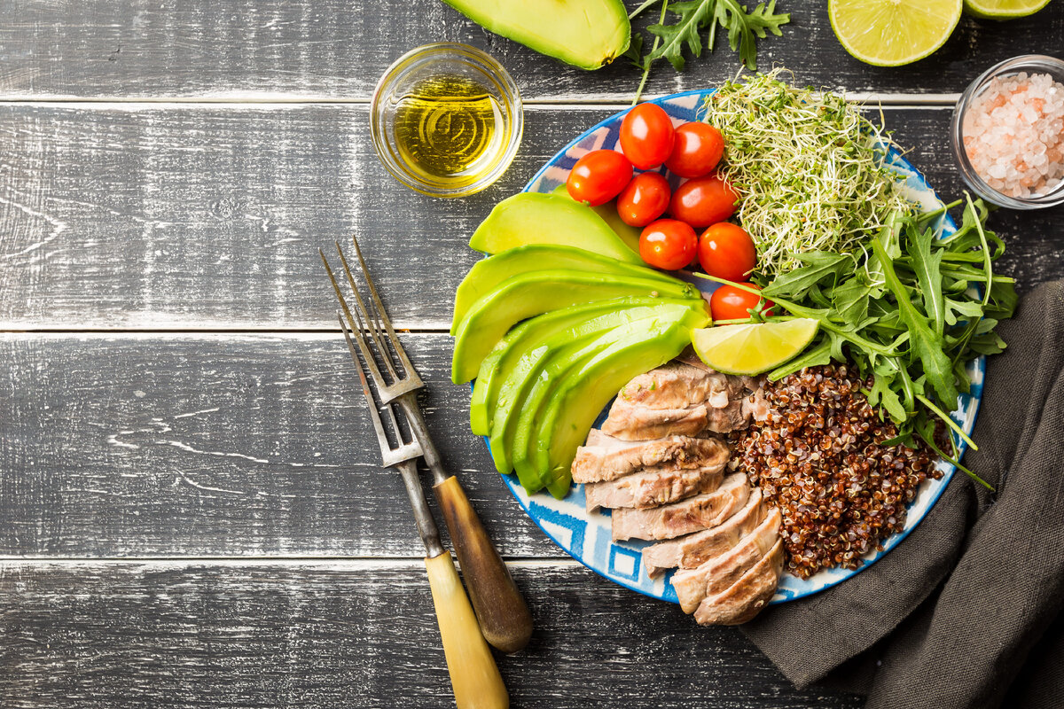 Еще четверть тарелки должны занимать сложные углеводы, предпочтительно крупы: гречка, амарант, киноа, пшено, неочищенный рис, овсянка. Крупы можно заменять крахмалистыми овощами ( вместо картофеля л