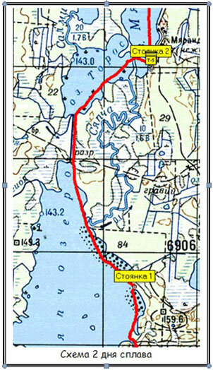 И сразу же после — крупное озеро Мярандукса, и мы увидели впереди стоянку. Всего несколько минут, и как только мы ее увидели поближе, сразу поняли – это наша дневка. Ведь на дневку хочется стать в хорошем и интересном месте. Здесь было много ровных площадок под палатки, у нас ведь в этот раз ставился большой палаточный городок, а кроме того, стоял оборудованный стол, что тоже очень удобно для приготовления пищи. На самом озере, слева от стоянки, имелся неплохой мелководный заливчик с травой, очень подходящий для рыбалки.