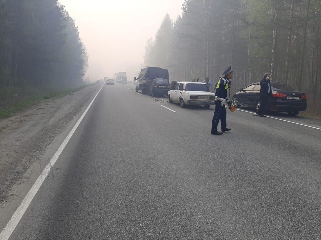 На задымленной трассе «Екатеринбург-Нижний Тагил-Серов» столкнулись 9 машин