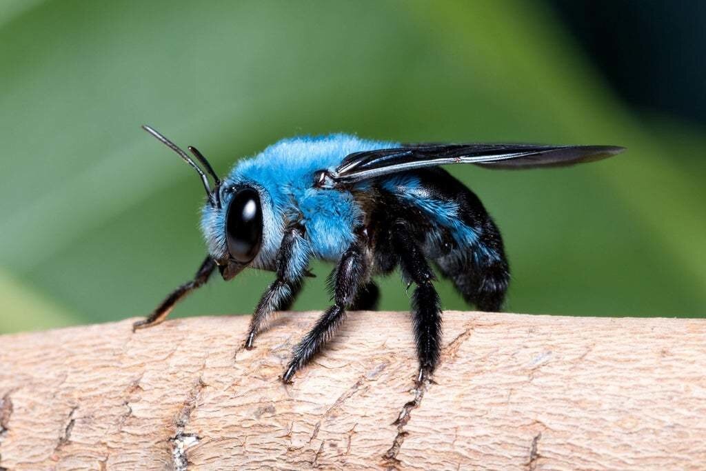 На самом деле пчелы бывают самых разных цветов, от зеленого и рыжего до фиолетового, белого и даже черного как смоль. Но сегодня мы поговорим о голубом. Голубая пчела-плотник (Xylocopa caerulea) - это вид пчел, который встречается в Северной Америке. Они известны своим уникальным голубым цветом и способностью строить гнезда в деревьях. Голубая пчела-плотник является одной из самых красивых и необычных пчел в мире. Она имеет сине-голубой цвет, который делает ее легко узнаваемой. Пчелы этого вида строят свои гнезда в дуплах деревьев, где они живут и питаются. Пчелы-плотники играют важную роль в экосистеме, так как они являются опылителями многих растений. Они также являются источником меда, который используется в кулинарии и медицине. Пчелы-плотники делают мед точно так же, как их меньшие собратья, но он намного гуще и плотнее, чем привычный нам мед, по консистенции напоминающий арахисовое масло или тесто для печенья. Самки смешивают этот мед с пыльцой, чтобы создать "пчелиный хлеб", ко
